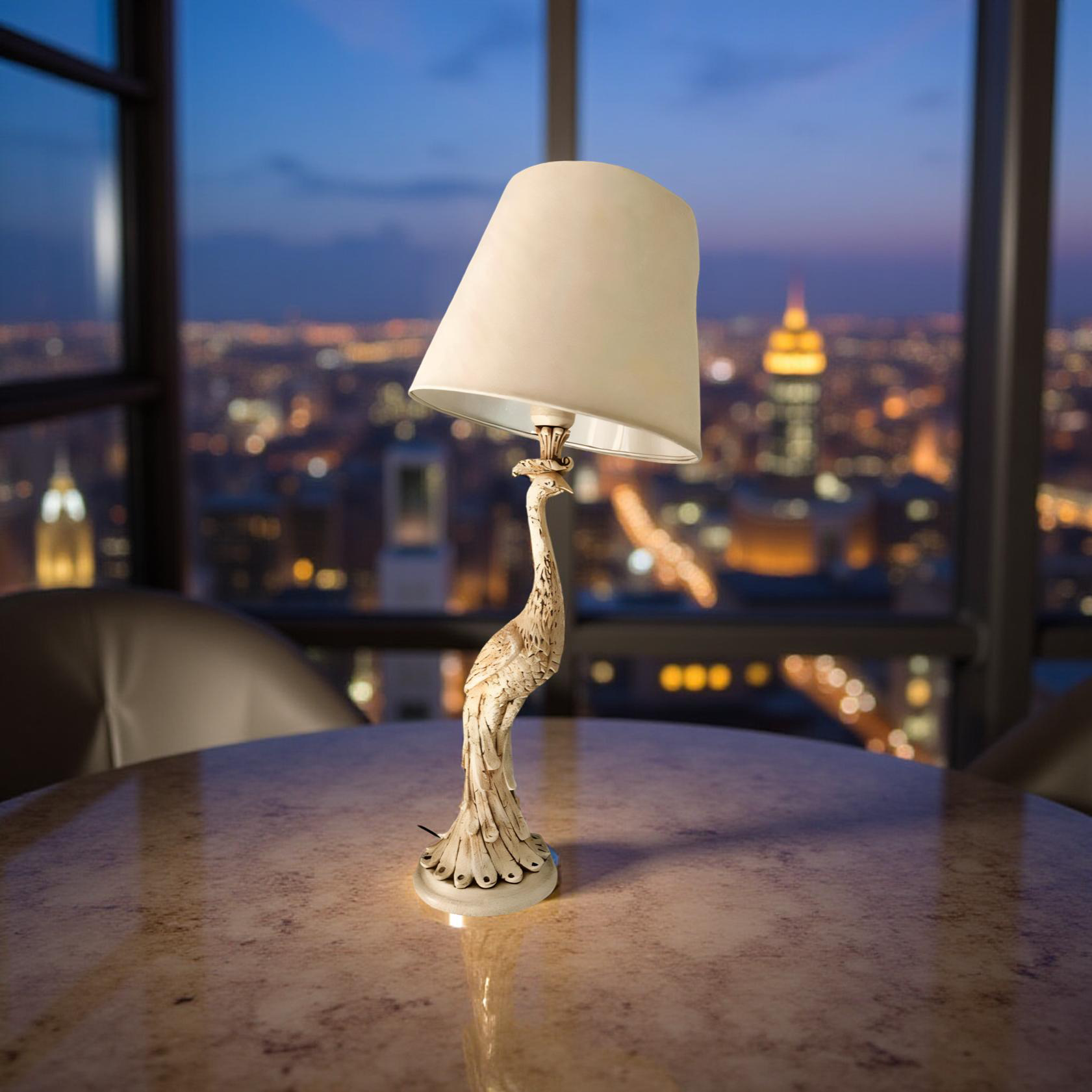 Grace your space with the majestic charm of our Royal Peacock Lamp. This luxury decor piece features a beautifully sculpted peacock base crafted from premium resin, known for its durability and fine detailing. The intricate feathers, elegant neck posture, and antique ivory finish make it a centerpiece of style and sophistication.